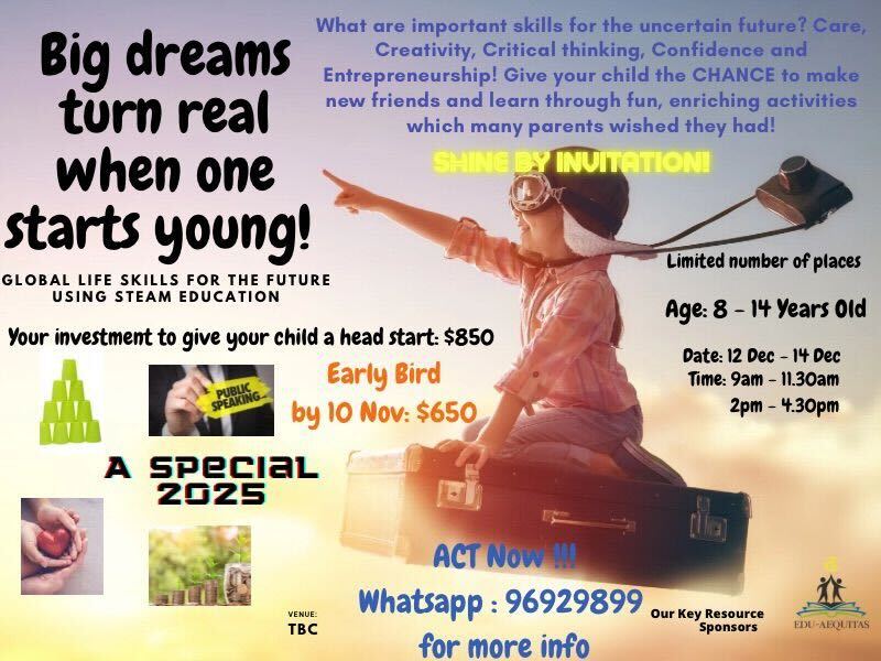 (Nearest MRT) Fort Canning (DT20) 7-8 mins walk from Exit A 33 Mohamad Sultan Road #02-04Come and join in Our annual inclusive camp with STEAM, Entrepreneurship and Brain-Based Learning!