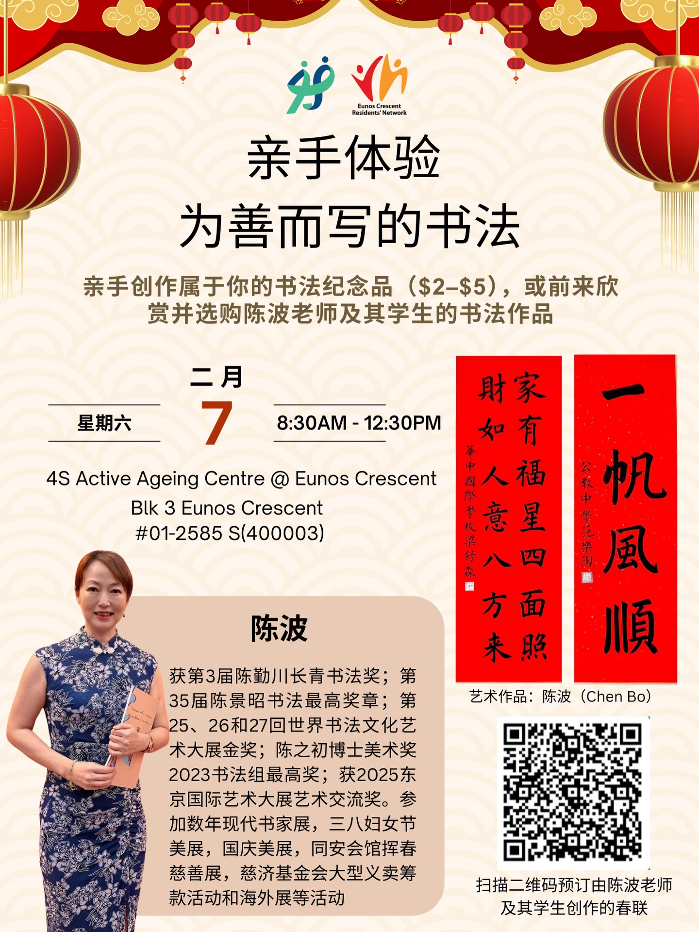 Come by to 𝘁𝗿𝘆 𝗰𝗮𝗹𝗹𝗶𝗴𝗿𝗮𝗽𝗵𝘆 𝘆𝗼𝘂𝗿𝘀𝗲𝗹𝗳 𝗮𝗻𝗱 𝗰𝗿𝗲𝗮𝘁𝗲 𝘆𝗼𝘂𝗿 𝗼𝘄𝗻 𝗸𝗲𝗲𝗽𝘀𝗮𝗸𝗲, or simply 𝗱𝗿𝗼𝗽 𝗶𝗻 𝘁𝗼 𝘃𝗶𝗲𝘄 and purchase beautiful hand-brushed works by 陈波 (Chen Bo) and her students.